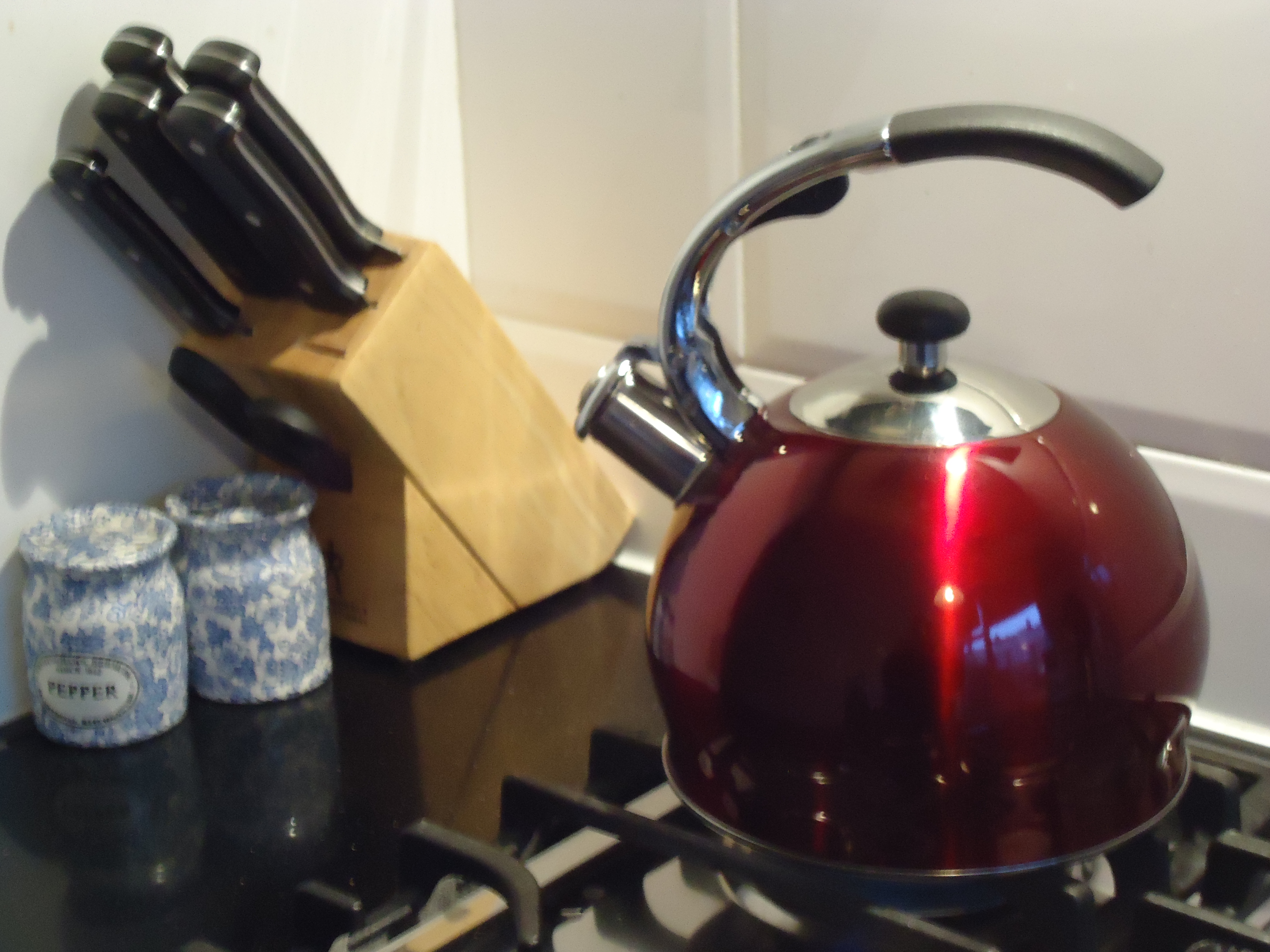 It’s not as if I were being picky. I didn’t care if the new one was shiny or polished steel, I just wanted a simple tea kettle. Of course in the back of my mind I may have been hoping to find a red kettle, but I didn’t want to get my hopes up.